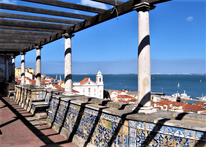 A short stroll up the street, you’ll find yet another miradouro, Portas do Sol (or “Doors of the Sun”, roughly translated). This is indeed a great spot to enjoy the sun while you grab something to drink and take in the view. If you’re an urban adventurer who loves to explore cities from up above, you might like our blog about Lisbon’s best viewpoints.